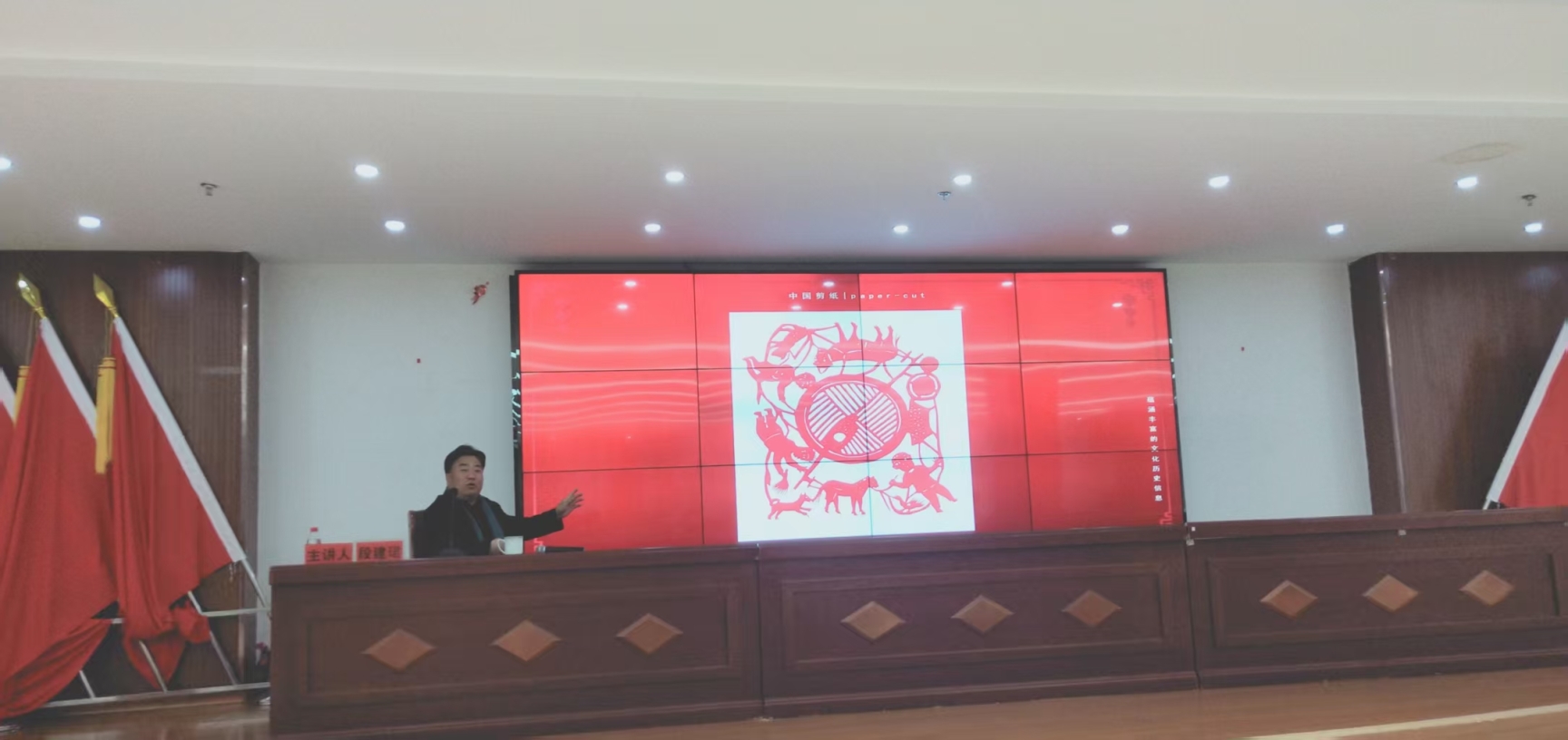 活动特邀内蒙古民间文艺家协会副主席、中国剪纸国家级非遗传承人、国内知名剪纸艺术大师、草原大写意剪纸创立者段建珺先生亲临授课,段先生以《草原大写意剪纸的创作主题表现与思维空间再构》为题作了主旨讲座。讲座从内蒙古民间剪纸的传承发展、主题表达、独特个性、审美认知等角度出发,结合丰富的案例,深刻挖掘其中蕴含的黄河文化与草原文化融合之美,体现了他个人对剪纸的深层与全面理解和把握,无论是从内容与形式的统一、题材与主题的暗合,还是从技艺与艺理的递升、才情与表现的贯通,都为当代青年如何理解剪纸和剪纸艺术以及赓续剪纸文化和剪纸审美,提供了资以借鉴和学习的路径。