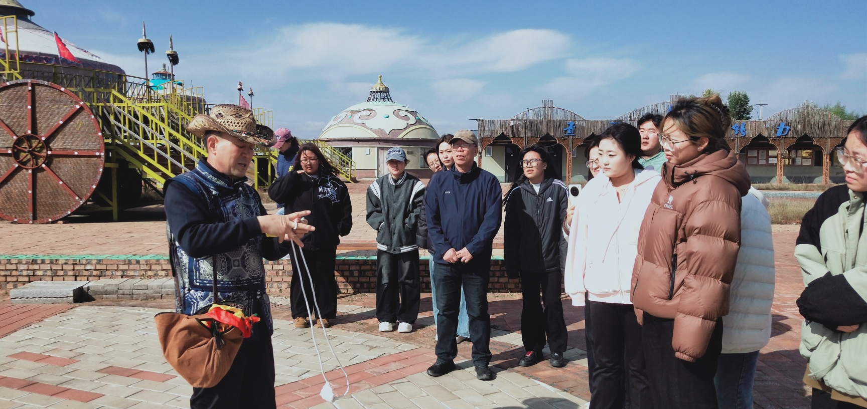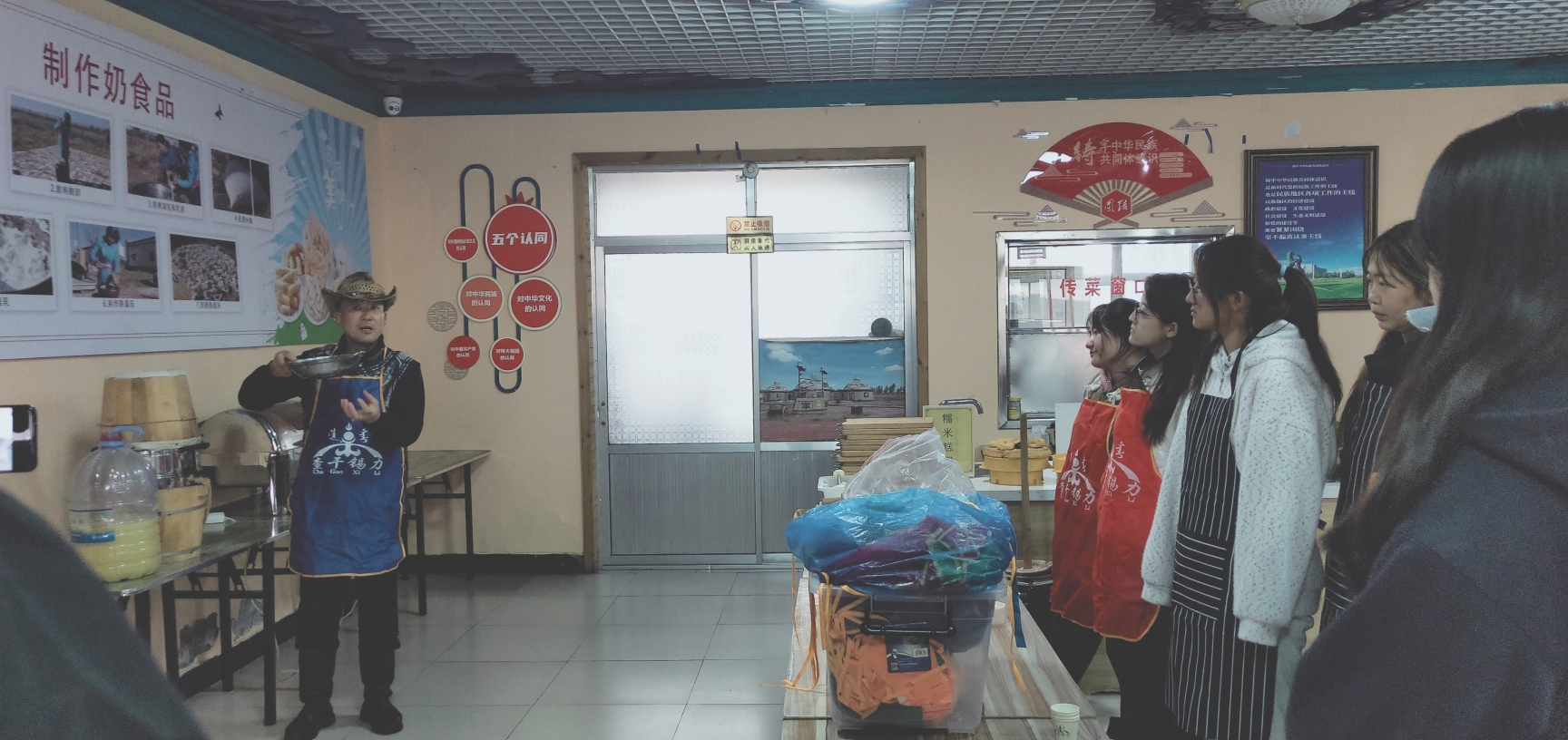 挂牌仪式结束后,结合生物技术系传统奶食品制作选修课程,师生们在非遗传承人吉人泰老师的指导下,亲手体验了鄂尔多斯奶酒酿造技艺、捣酸奶、压奶酪等制作工艺,以及蒙古迎宾礼、抛石(古仁格)等非遗项目。通过丰富多彩的实践活动,不仅让师生近距离感受了传统奶制品的非遗魅力,更以轻松有趣的方式拉近了大家与传统文化的距离,为非遗传承注入了新的活力。