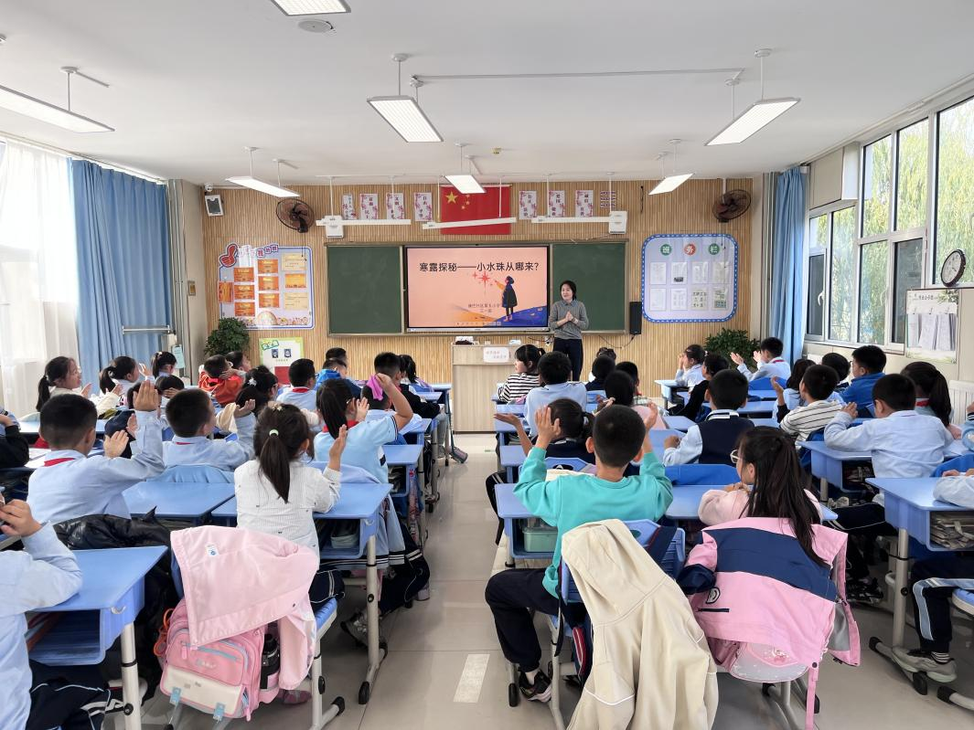 10月23日,beat365环境工程专业教师褚海艳副教授来到康巴什区第五小学,面向三年级1班全体学生,开展了一堂生动有趣的科普课程“寒露——露水凝结实验”。