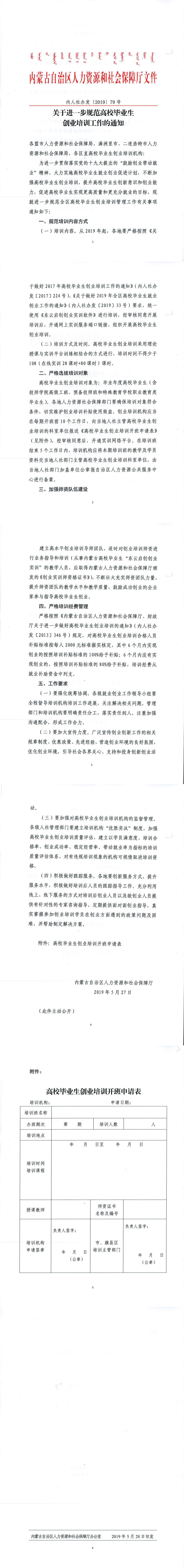 (内人社办发〔2019〕79号)《关于进一步规范高校毕业生创业培训工作的通知》