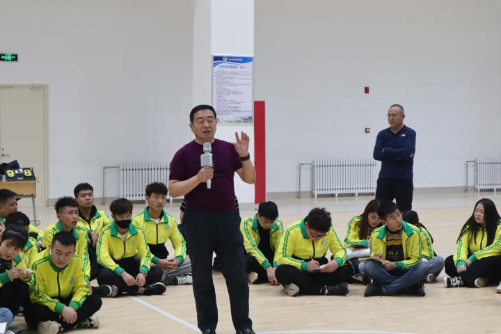 比赛结束后,学生们意犹未尽,并未立刻离开场馆,而是围绕在老师们左右,畅所欲言。随后,党支部书记张晓飞同志为学生们献上一场别开生面的党史学习课。“中国共产党成立100周年,回顾党的光荣历史和丰功伟绩……”学生们席地而坐,认真听讲,做着笔记。