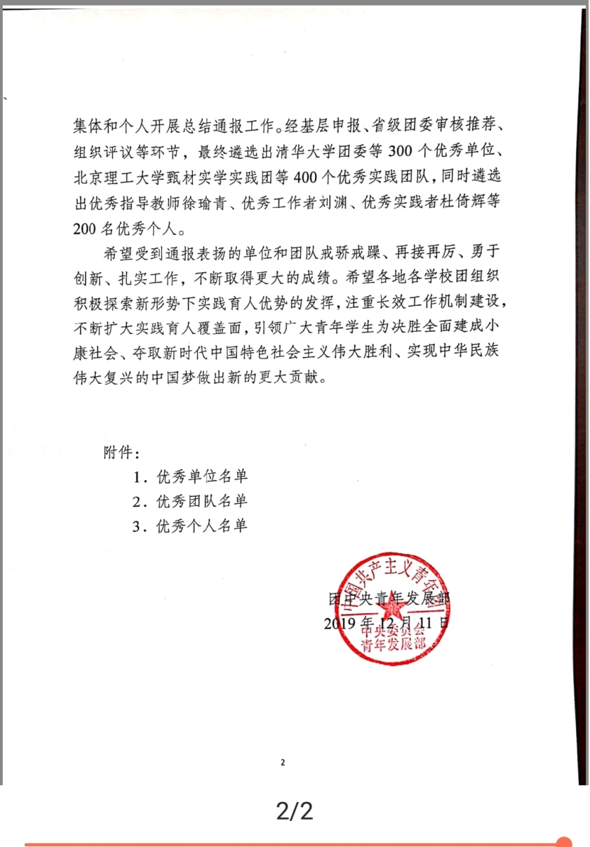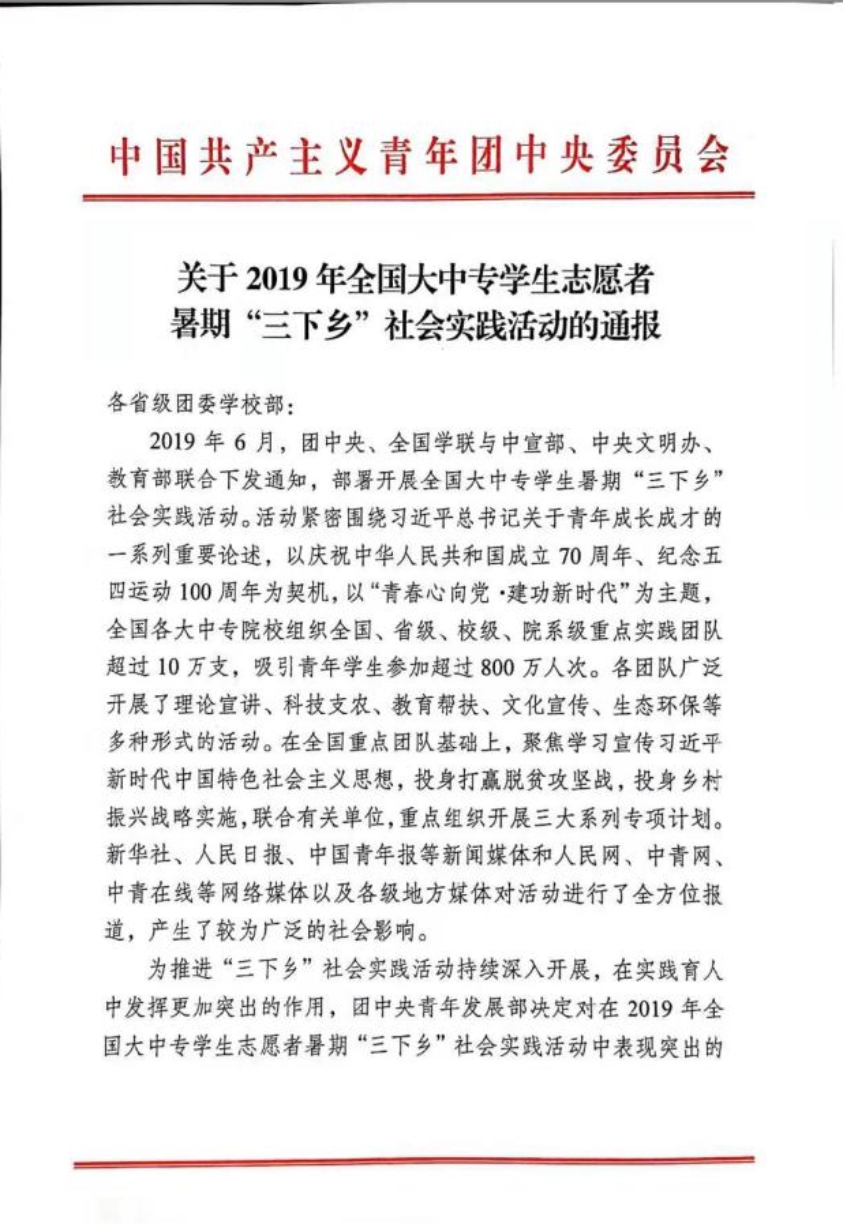 喜讯:“青春行动·助力环保”实践队获团中央2019年全国大中专学生志愿者暑期“三下乡”社会实践活动优秀团队称号