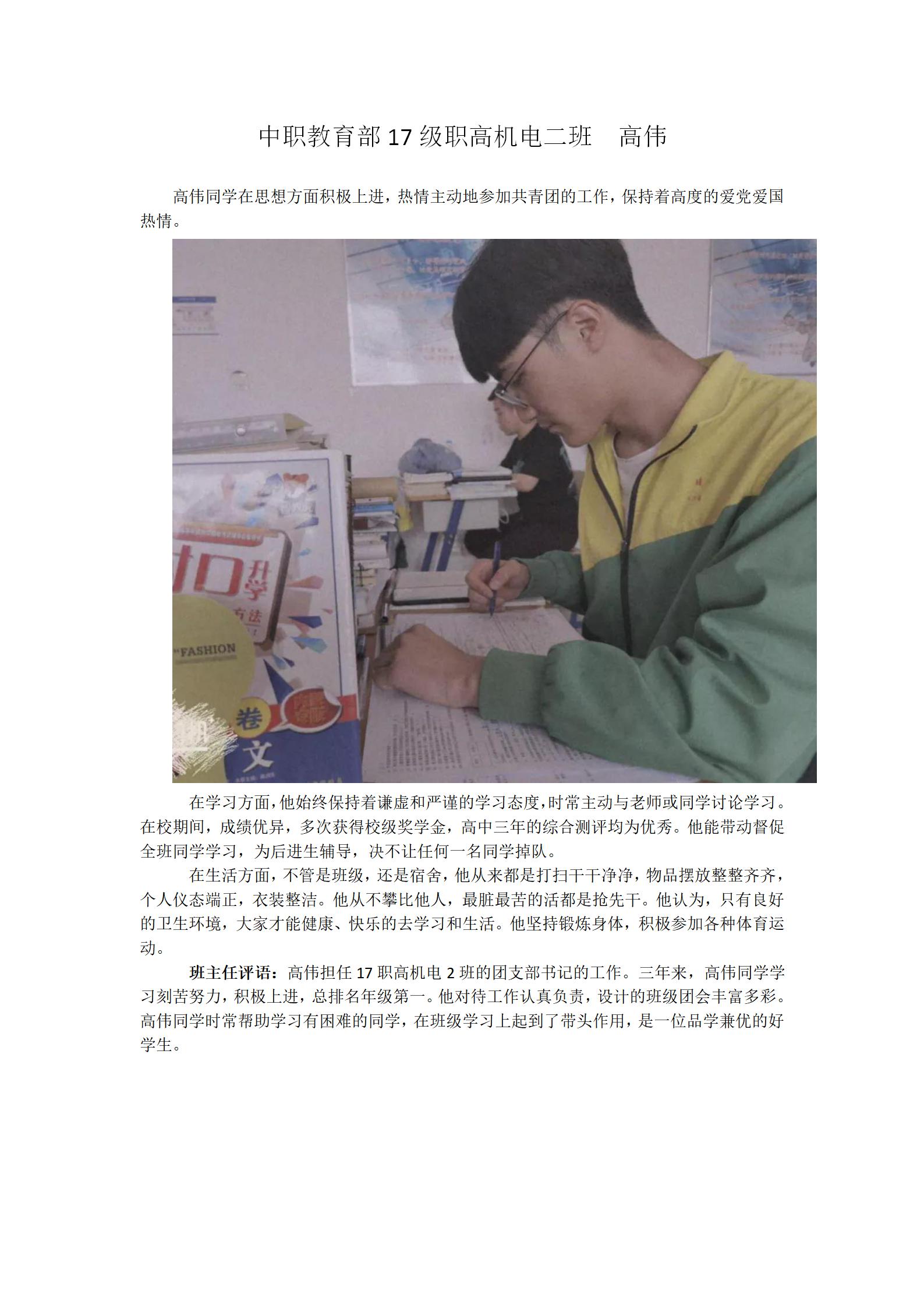 优秀毕业生先进事迹——中职教育部
