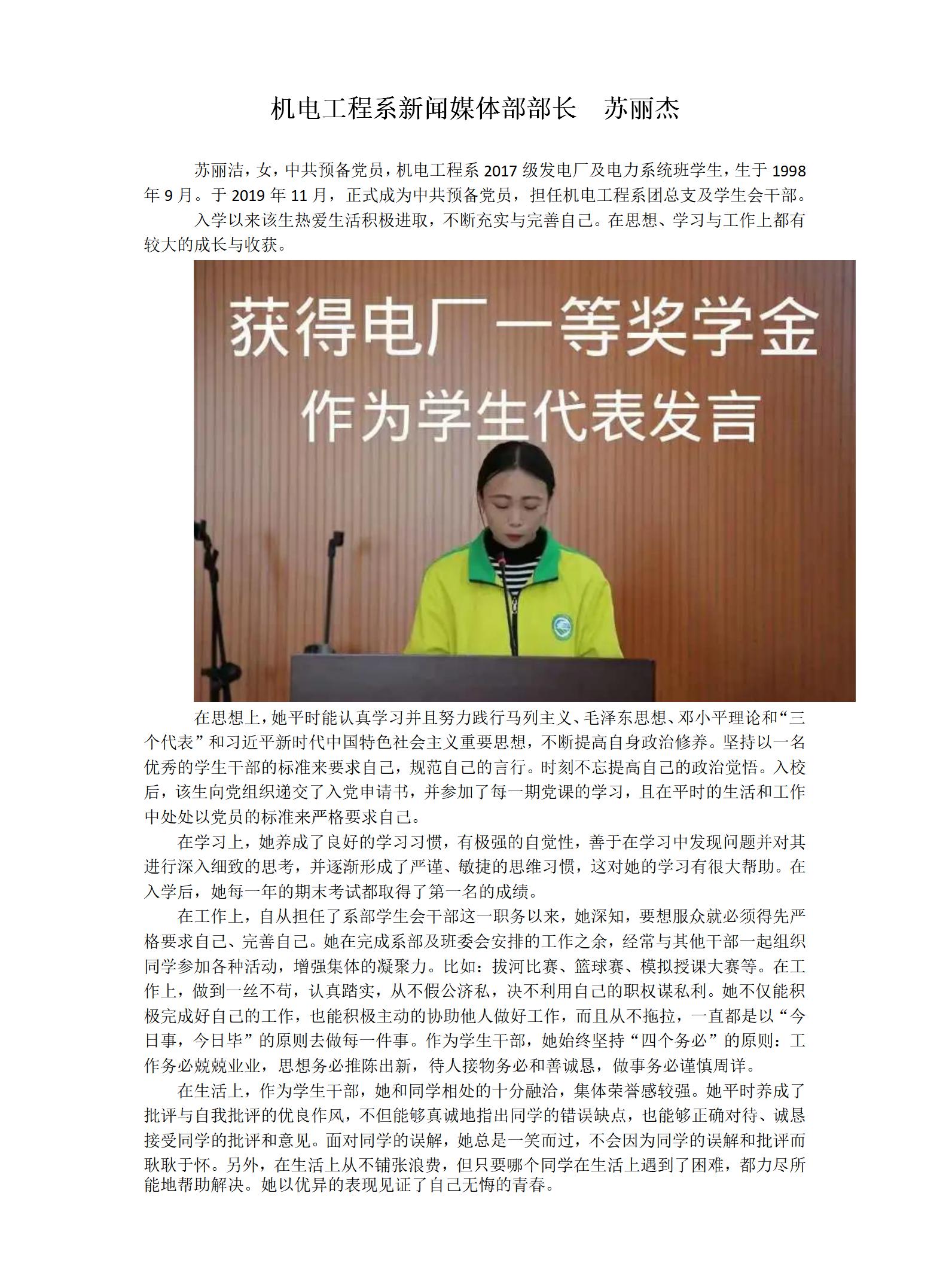 优秀毕业生先进事迹——机电工程系