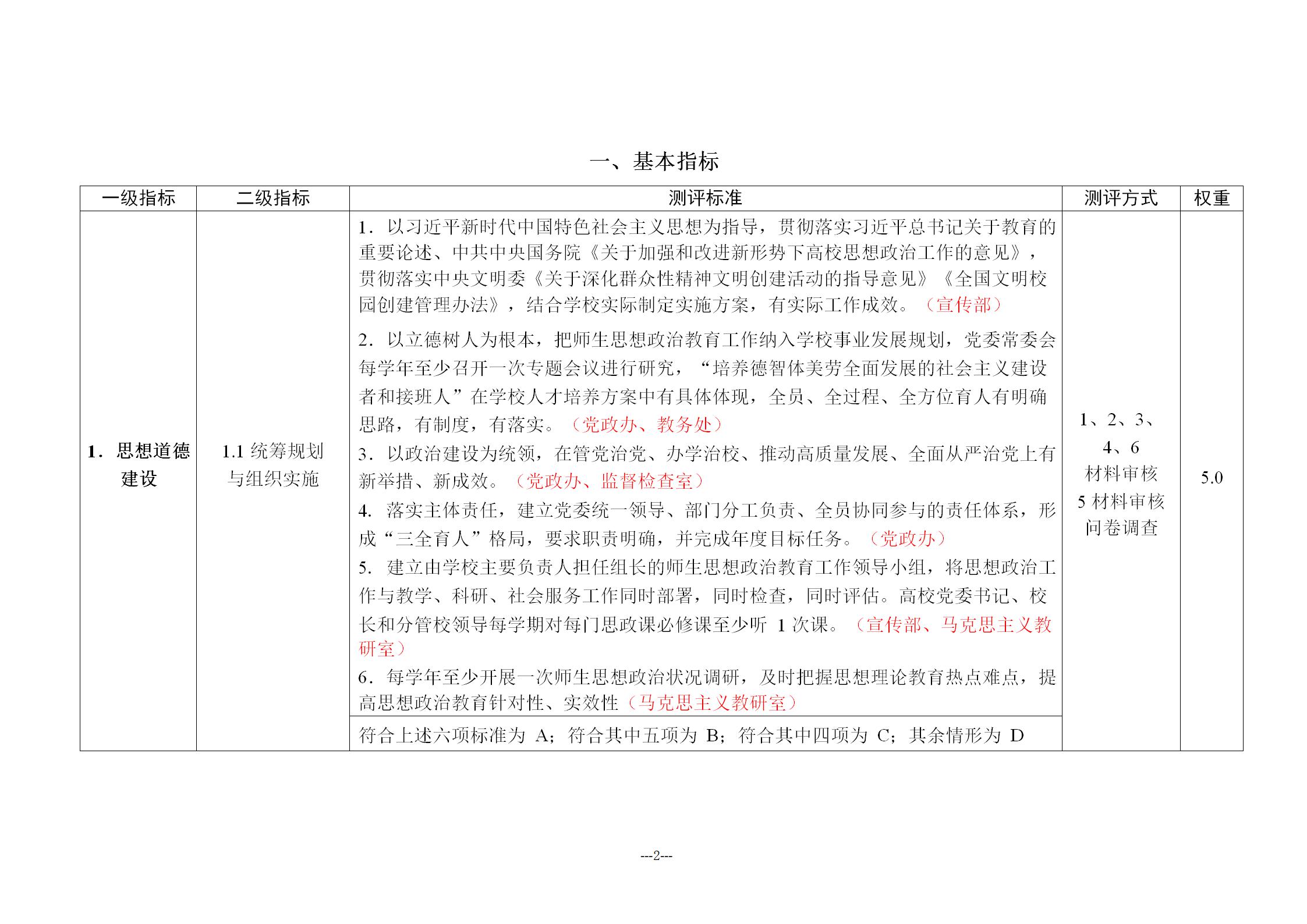高校文明校园测评细则(2020年6月)(任务分解版).docx