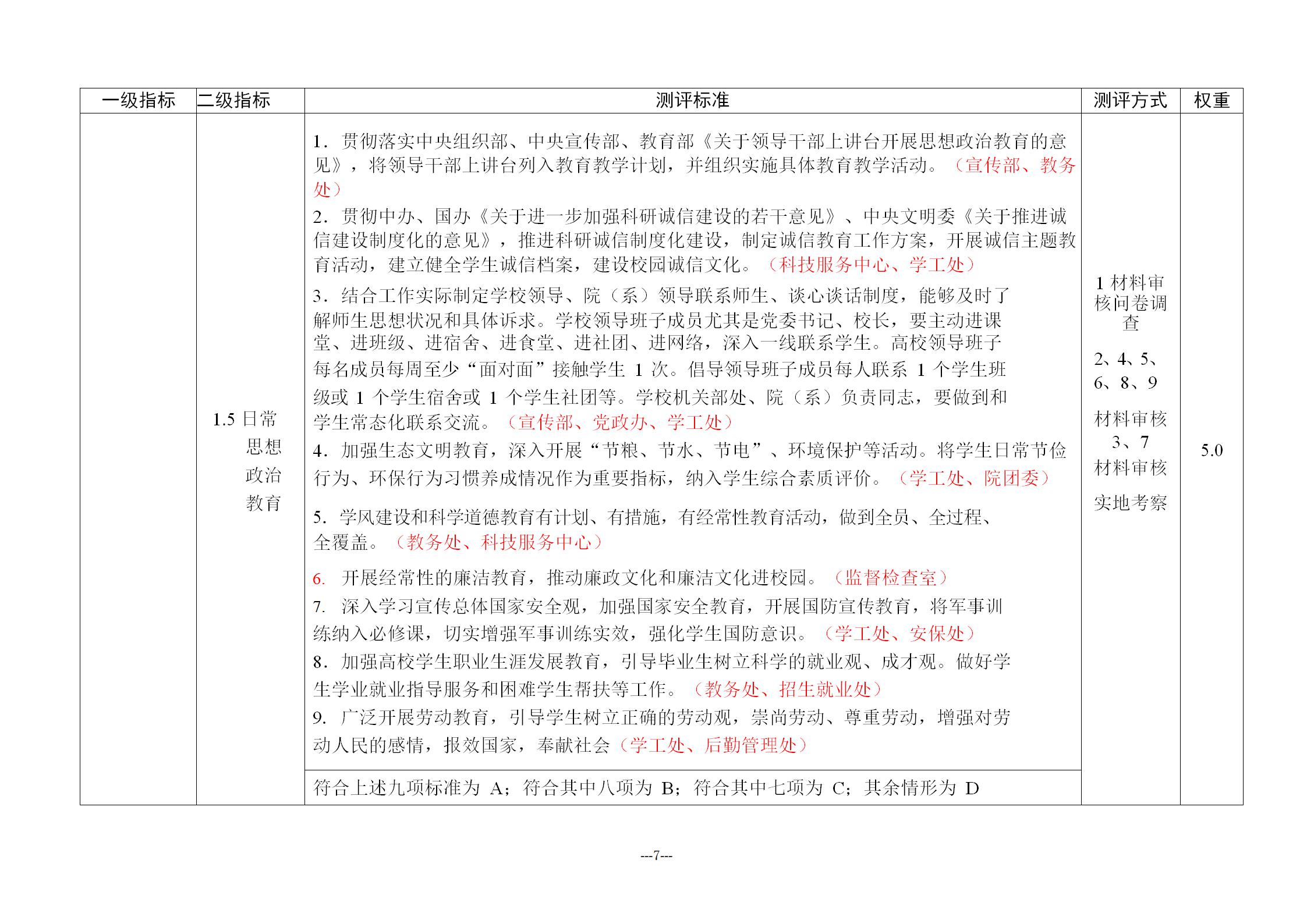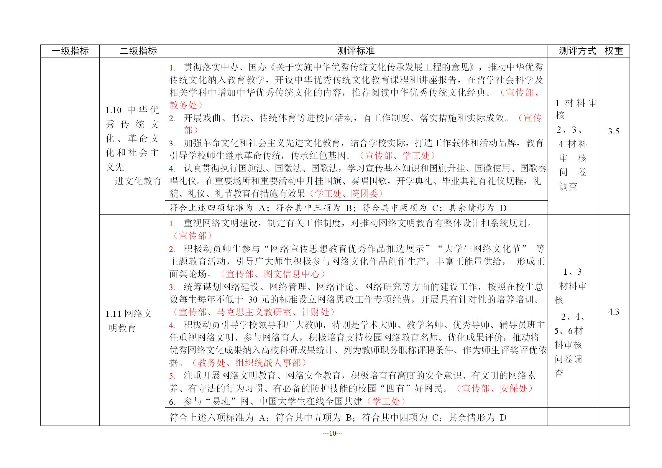 全国高校文明校园测评细则