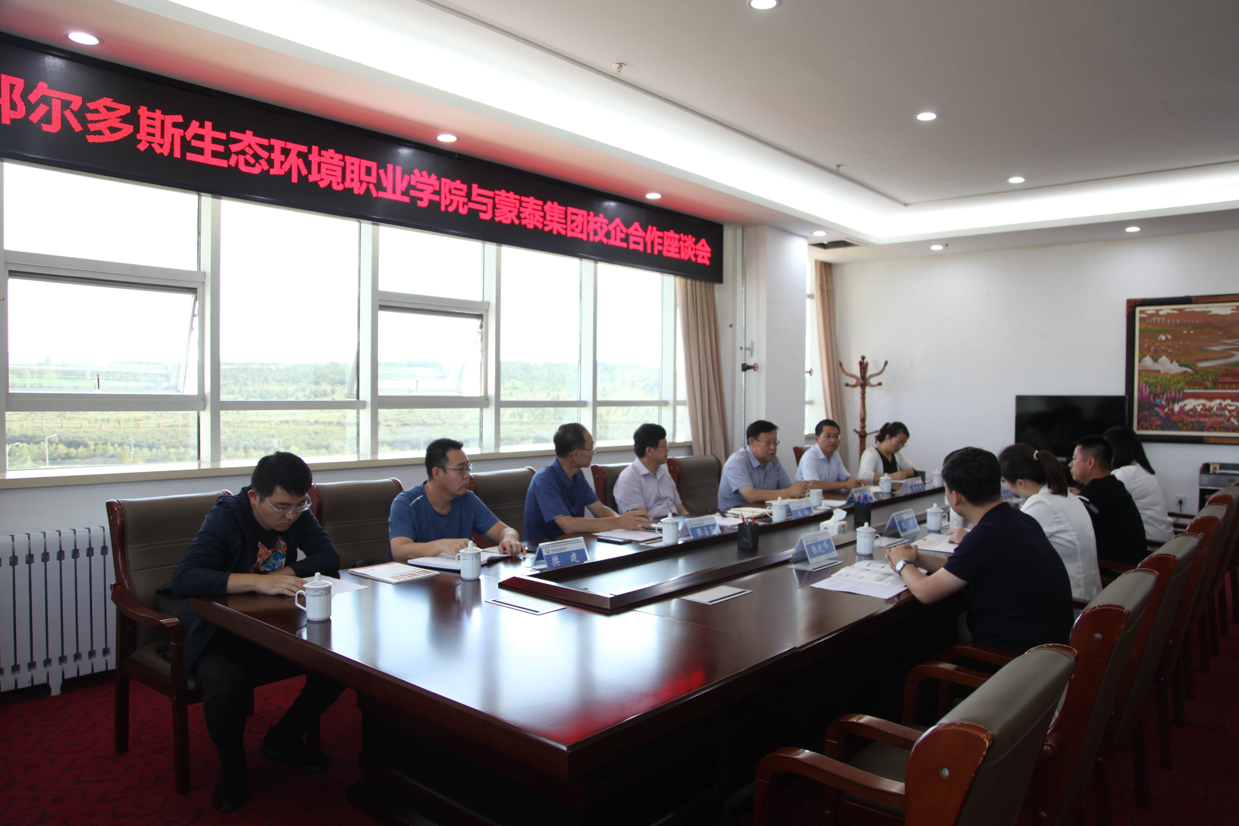 8月26日下午,beat365与蒙泰集团校企合作座谈会在学院图文信息楼701召开。学院党委书记王恒,党委副书记、院长王德强,蒙泰集团总裁助理王惠出席座谈会。